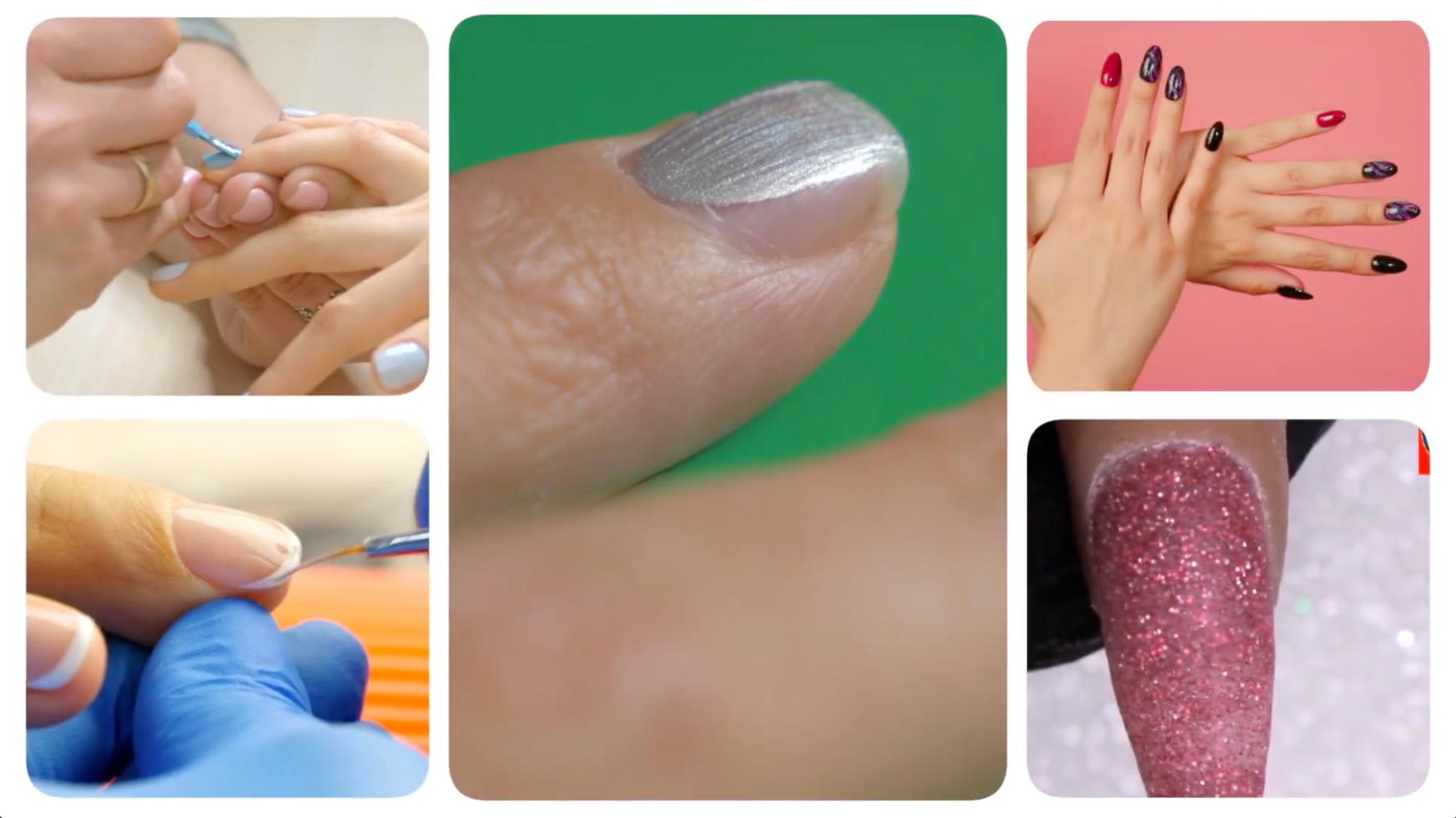 Licensed professional clips, sourced allowed visuals, and selected supporting footage to illustrate each manicure type accurately (no AI tools existed yet).