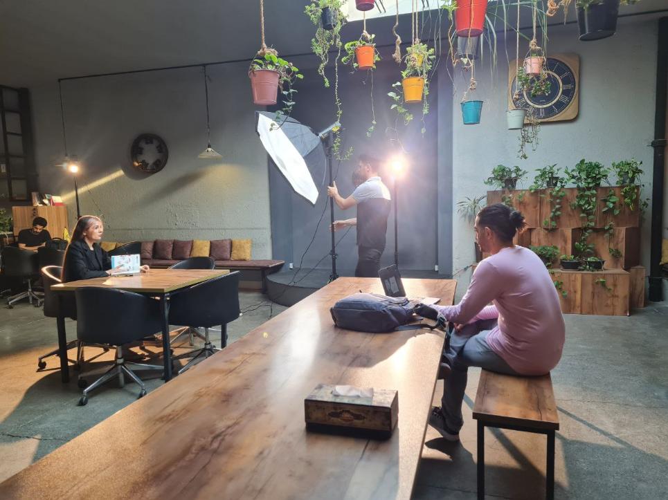We used dual Canon cameras, minimal lighting, and green-screen to simulate multiple environments. Practicals, angles, and small set enhancements elevated production value significantly.
